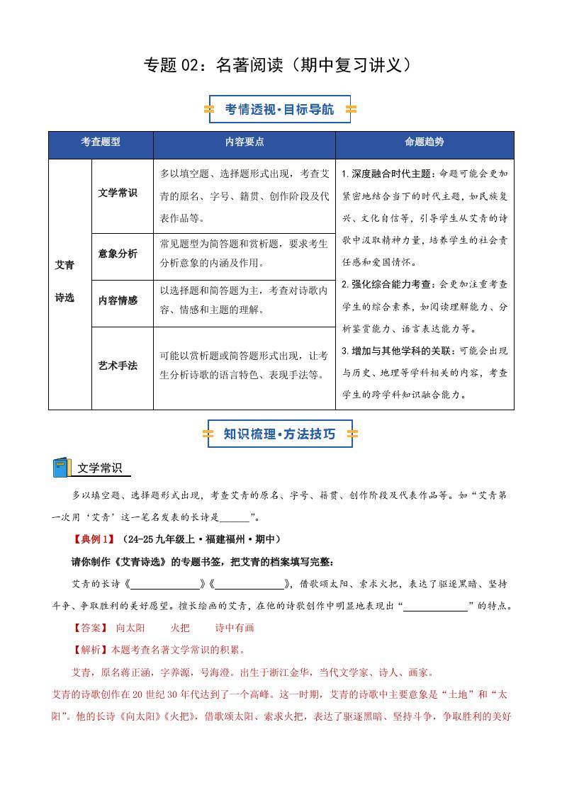 专题02:名著阅读(期中复习讲义)(学生版)