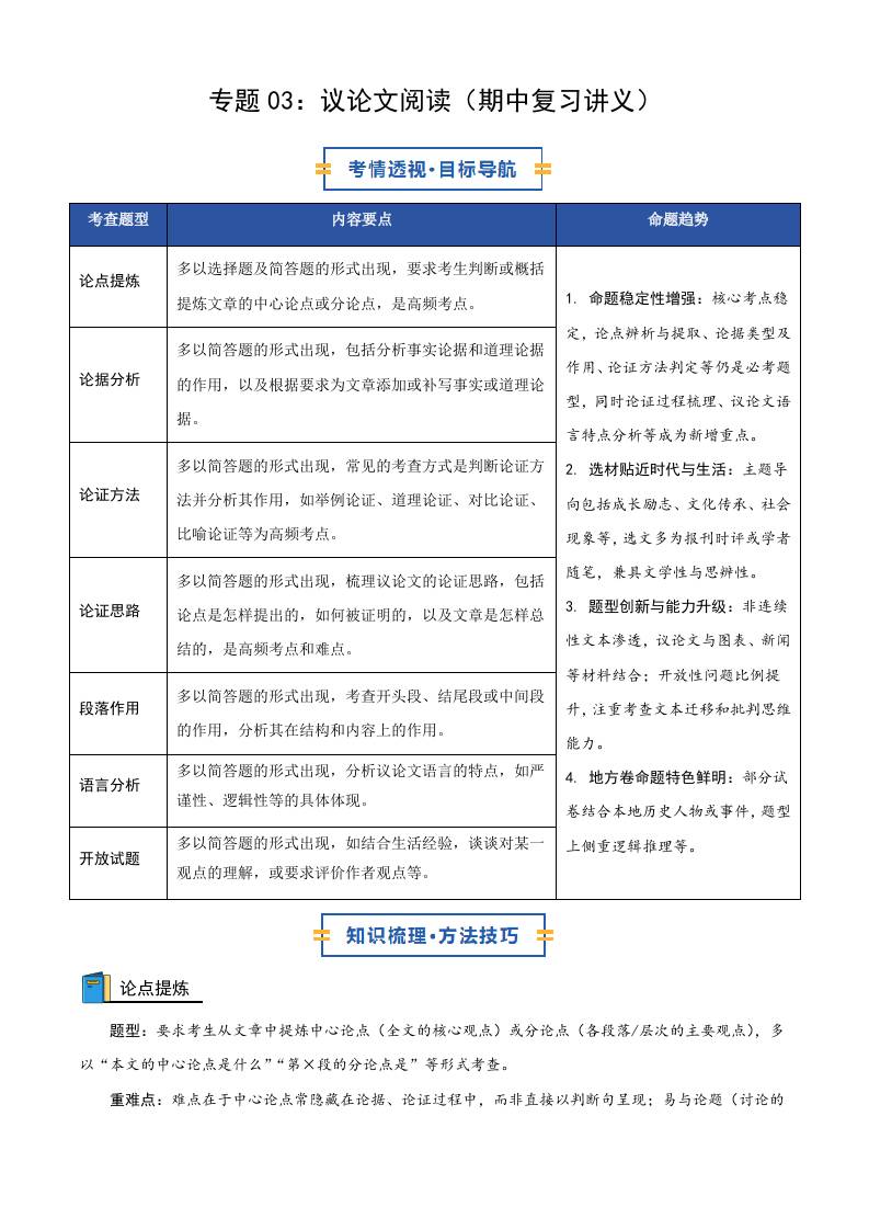 专题03:议论文阅读(期中复习讲义)(学生版)