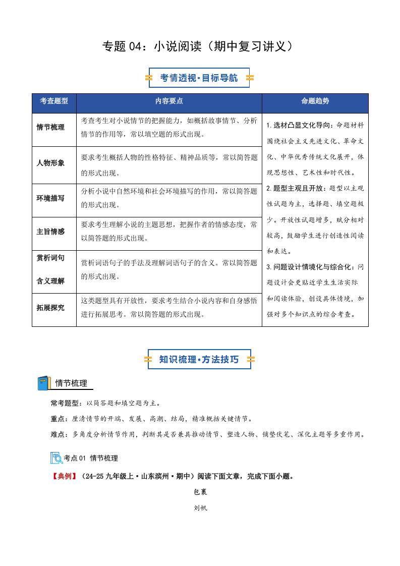 专题04:小说阅读(期中复习讲义)(学生版)