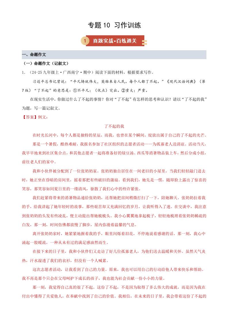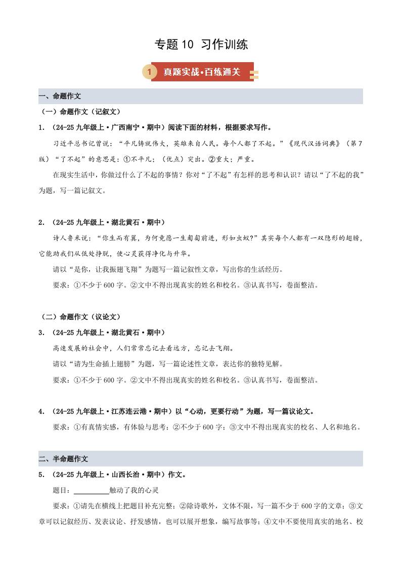 专题10 习作训练(期中专项训练)(学生版)