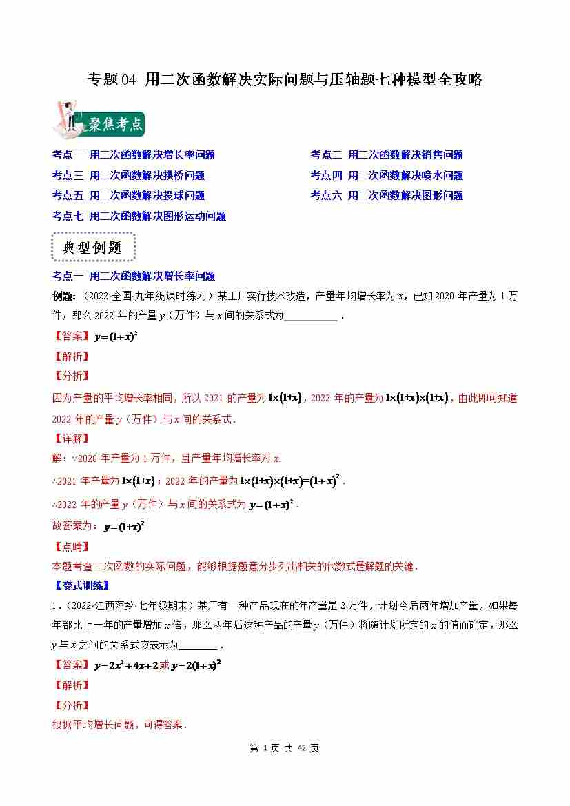 专题04 用二次函数解决实际问题与压轴题七种模型全攻略(解析版)--【压轴必考】2022-2023学年九年级数学上册压轴题攻略(浙教版)