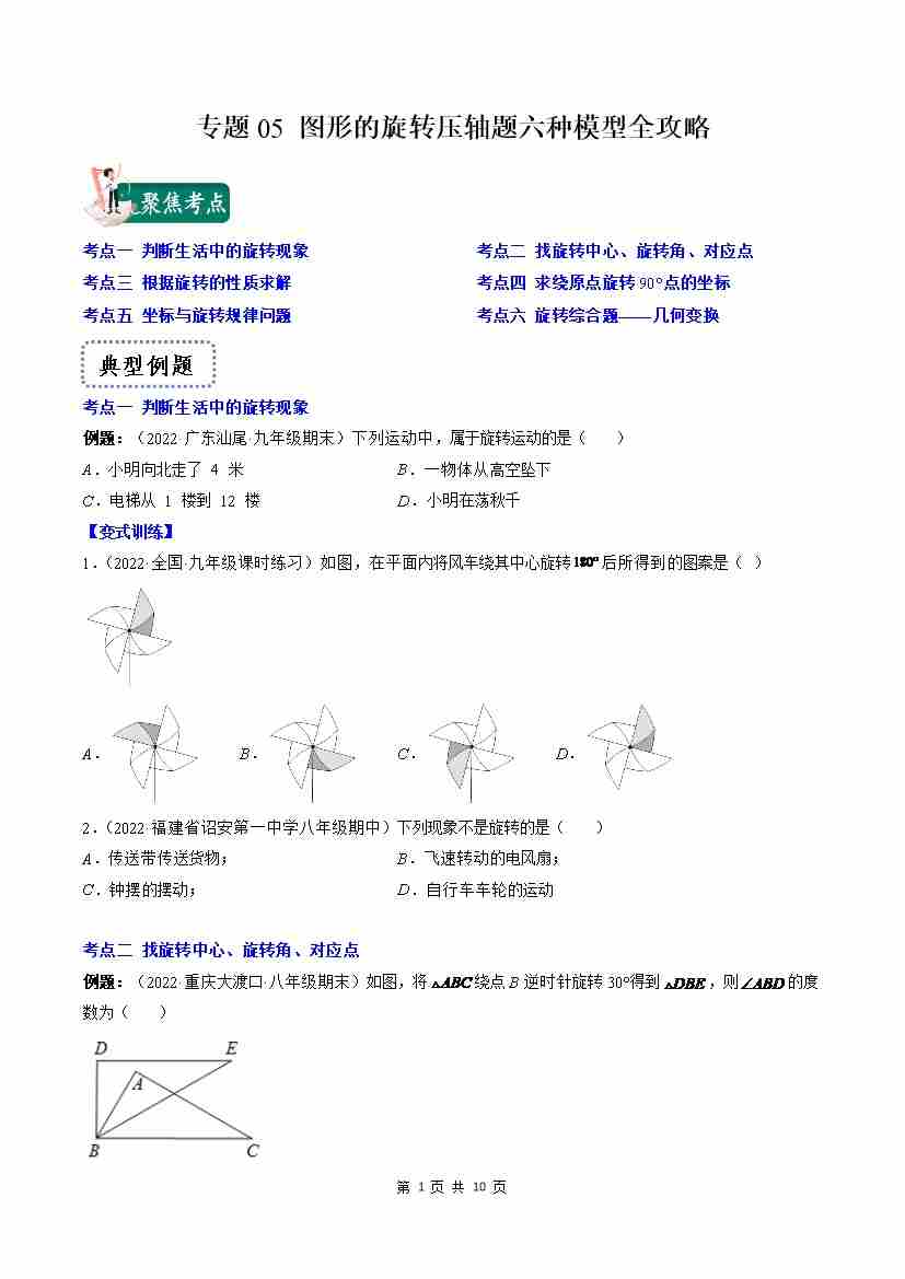 专题05 图形的旋转压轴题六种模型全攻略(原卷版)--【压轴必考】2022-2023学年九年级数学上册压轴题攻略(浙教版)