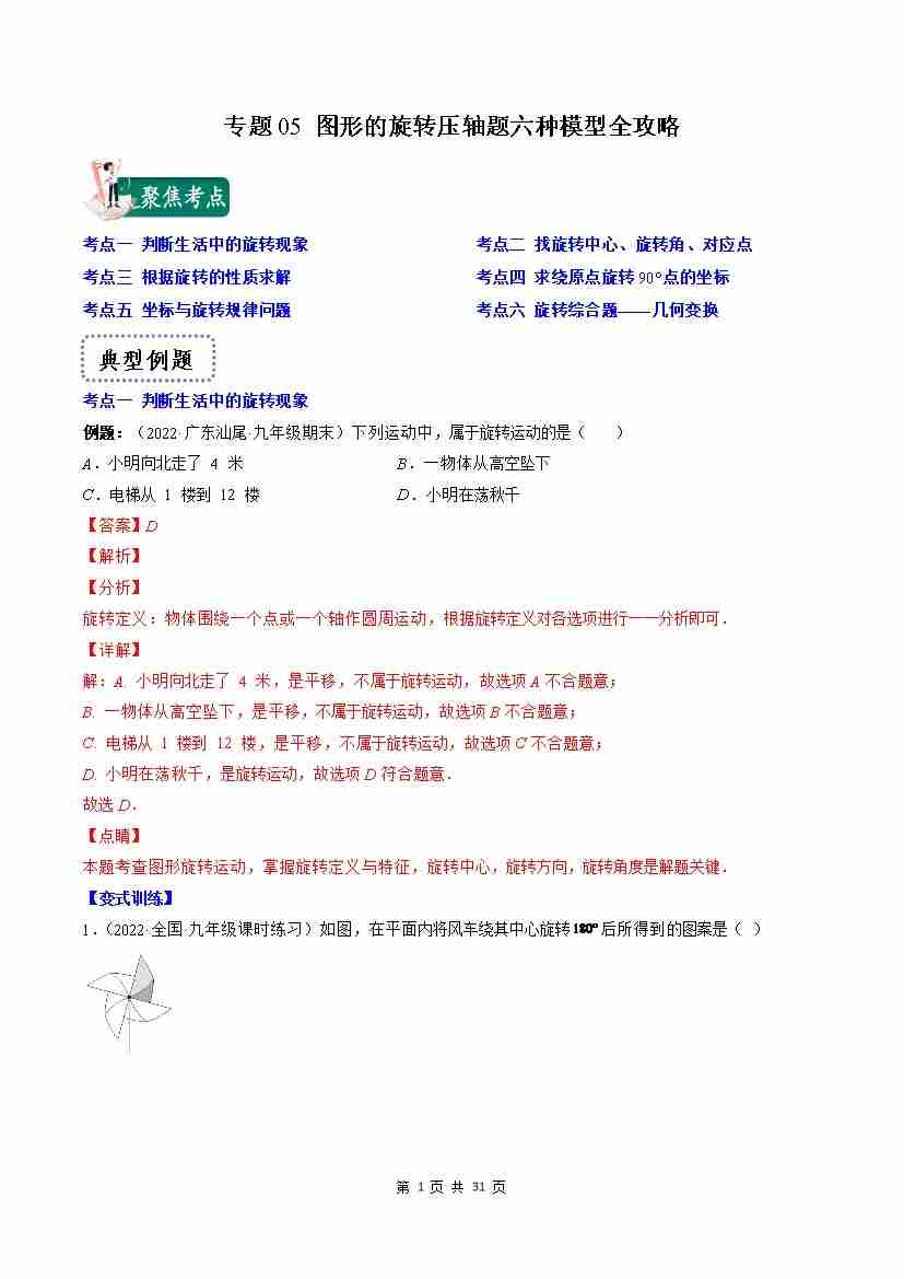 专题05 图形的旋转压轴题六种模型全攻略(解析版)--【压轴必考】2022-2023学年九年级数学上册压轴题攻略(浙教版)