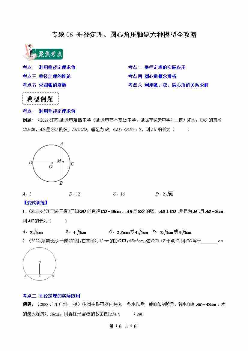 专题06 垂径定理、圆心角压轴题六种模型全攻略(原卷版)