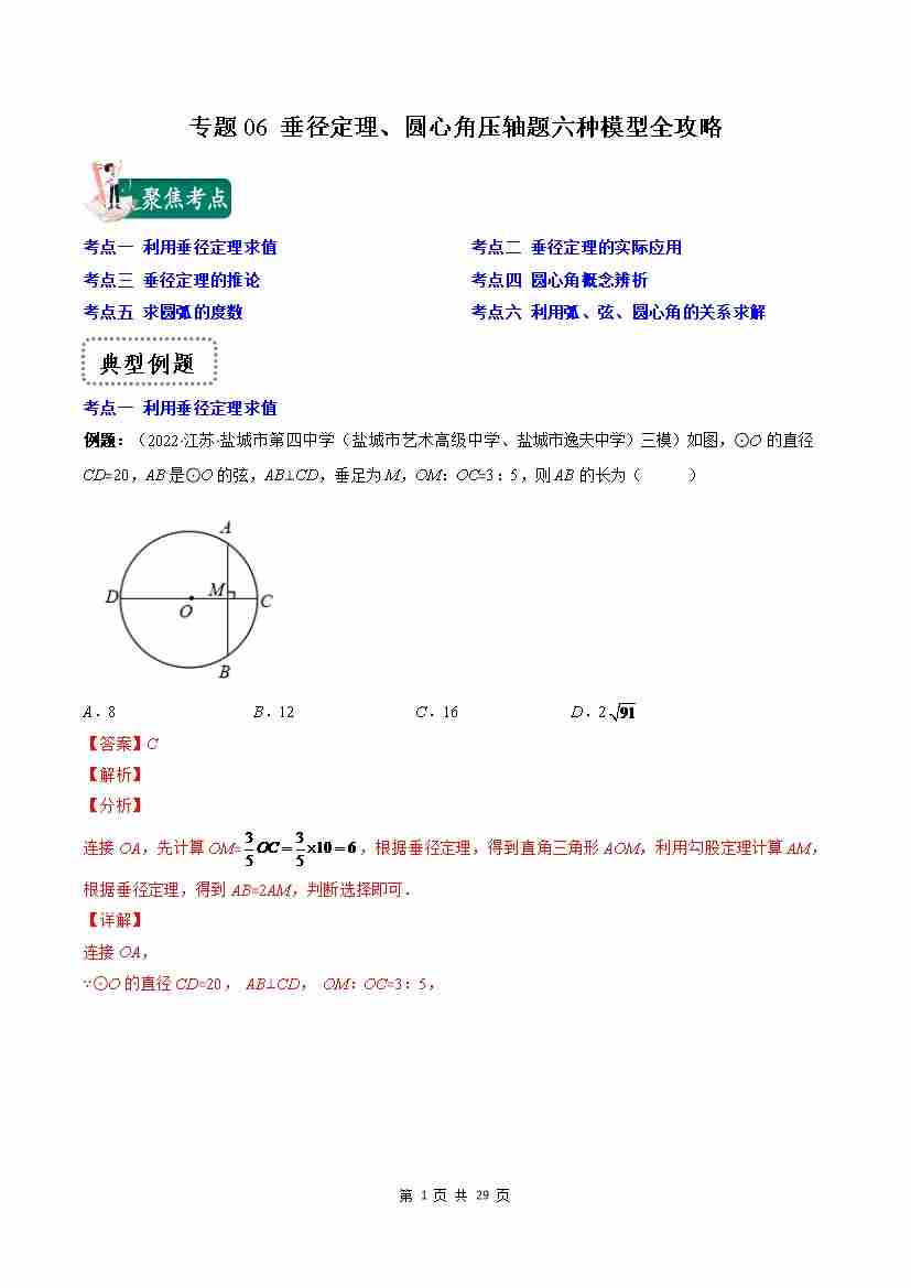 专题06 垂径定理、圆心角压轴题六种模型全攻略(解析版)