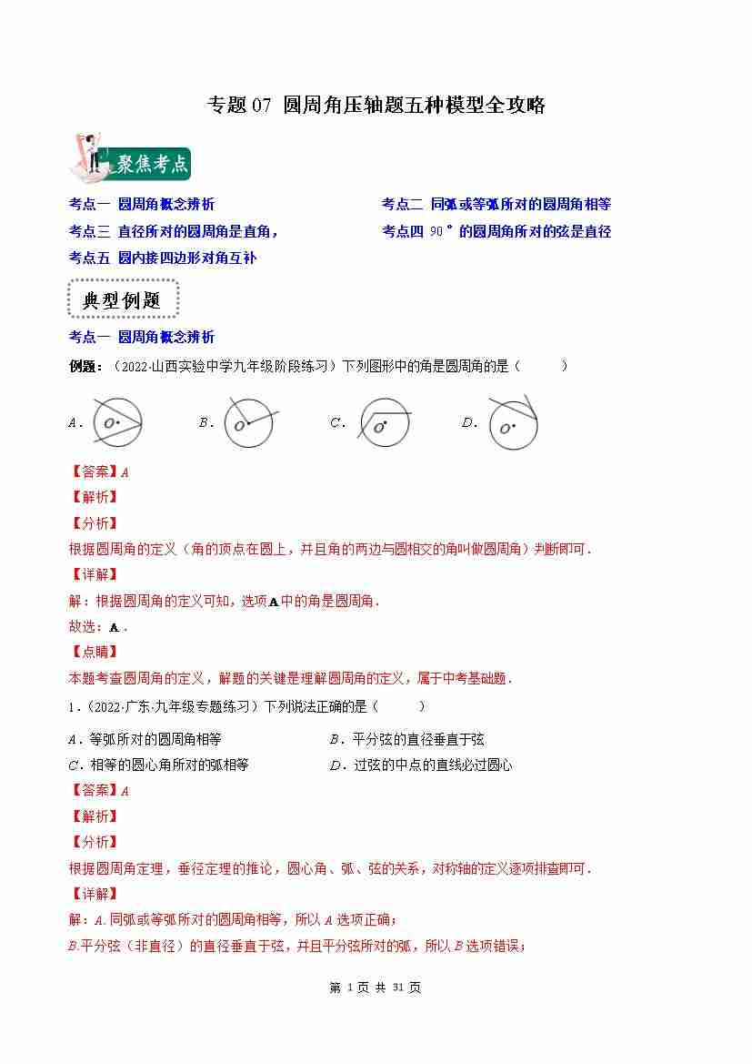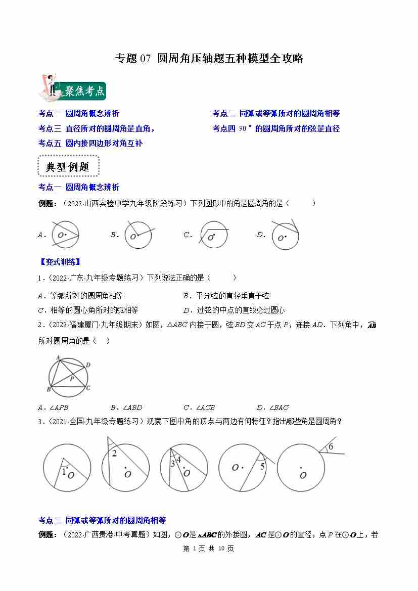 专题07 圆周角压轴题五种模型全攻略(原卷版)