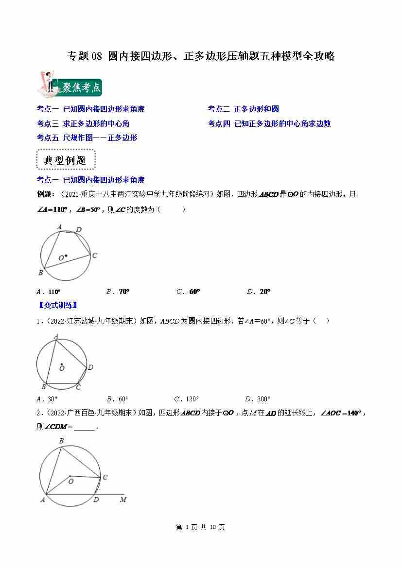 专题08 圆内接四边形、正多边形压轴题五种模型全攻略(原卷版)