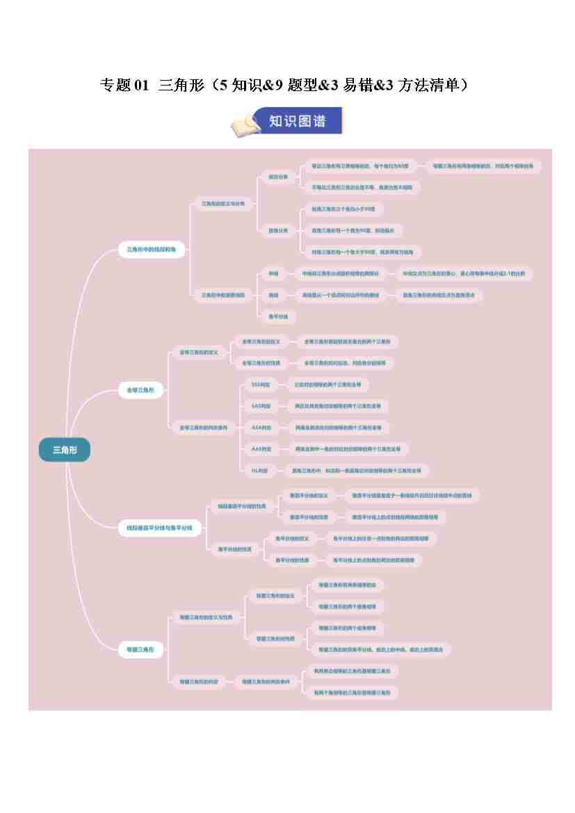 专题01 三角形(5知识&9题型&3易错&3方法清单)(期末复习知识清单)(学生版)