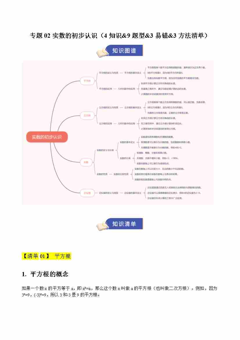 专题02 实数的初步认识(期末复习知识清单,4知识&9题型&3易错&3方法清单)(学生版)