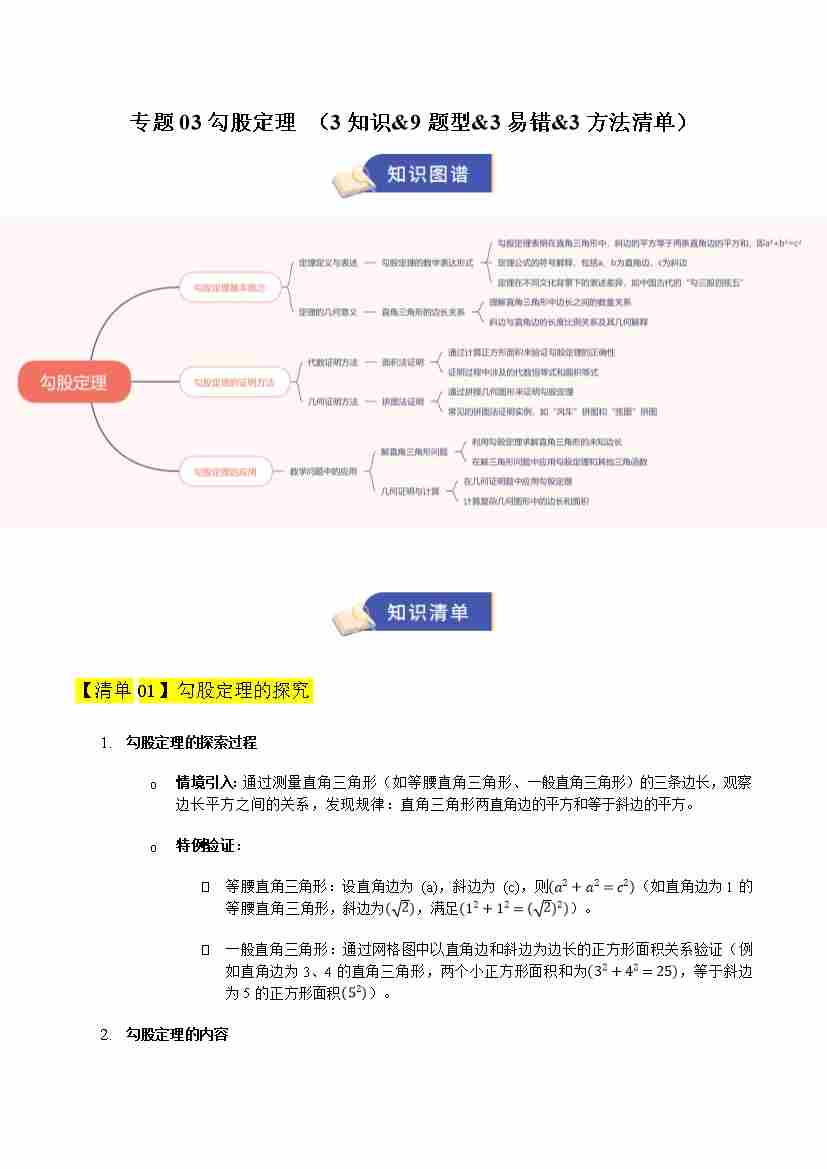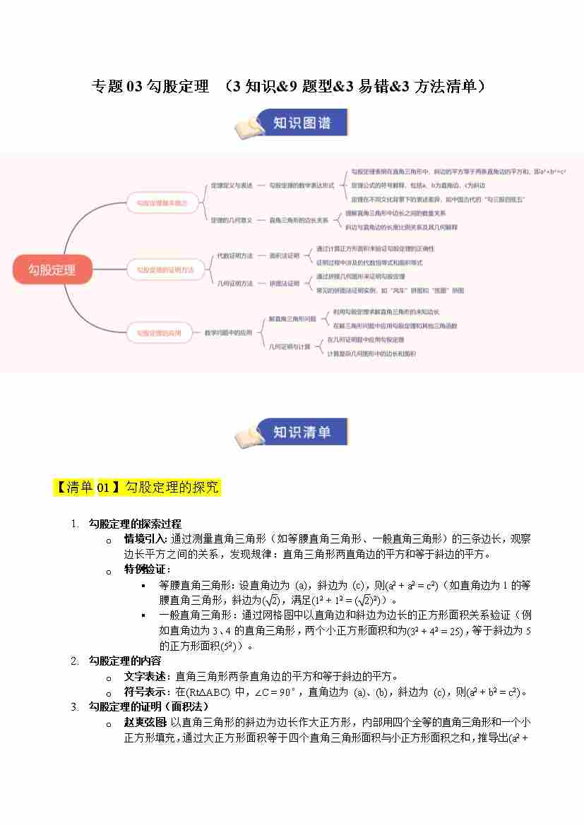 专题03勾股定理(期末复习知识清单,3知识&9题型&3易错&3方法清单)(学生版)