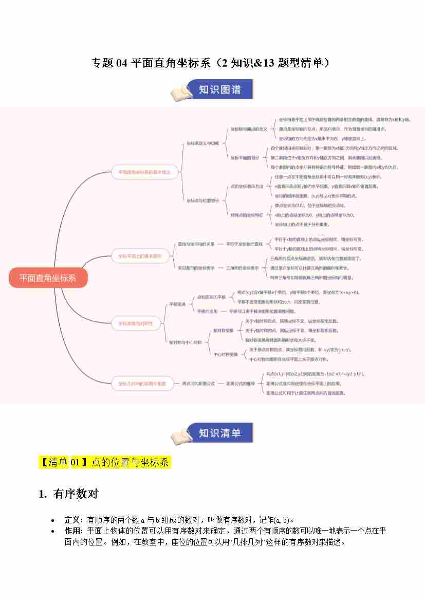 专题04 平面直角坐标系(期末复习知识清单,2知识&13题型清单)(原卷版)
