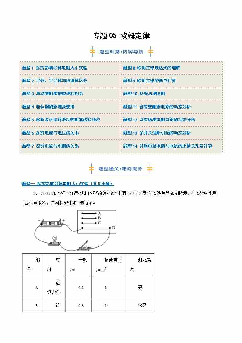 专题05 欧姆定律(期末专项训练)(原卷版)