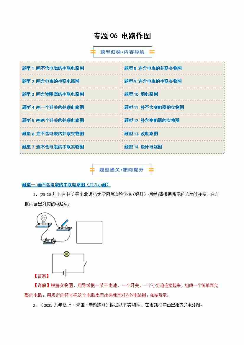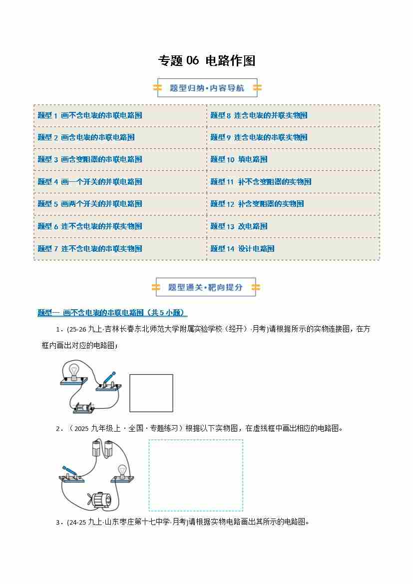 专题06 电路作图(期末专项训练)(原卷版)