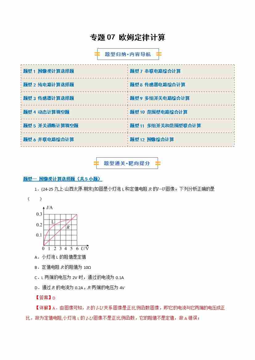 专题07 欧姆定律计算(期末专项训练)(解析版)