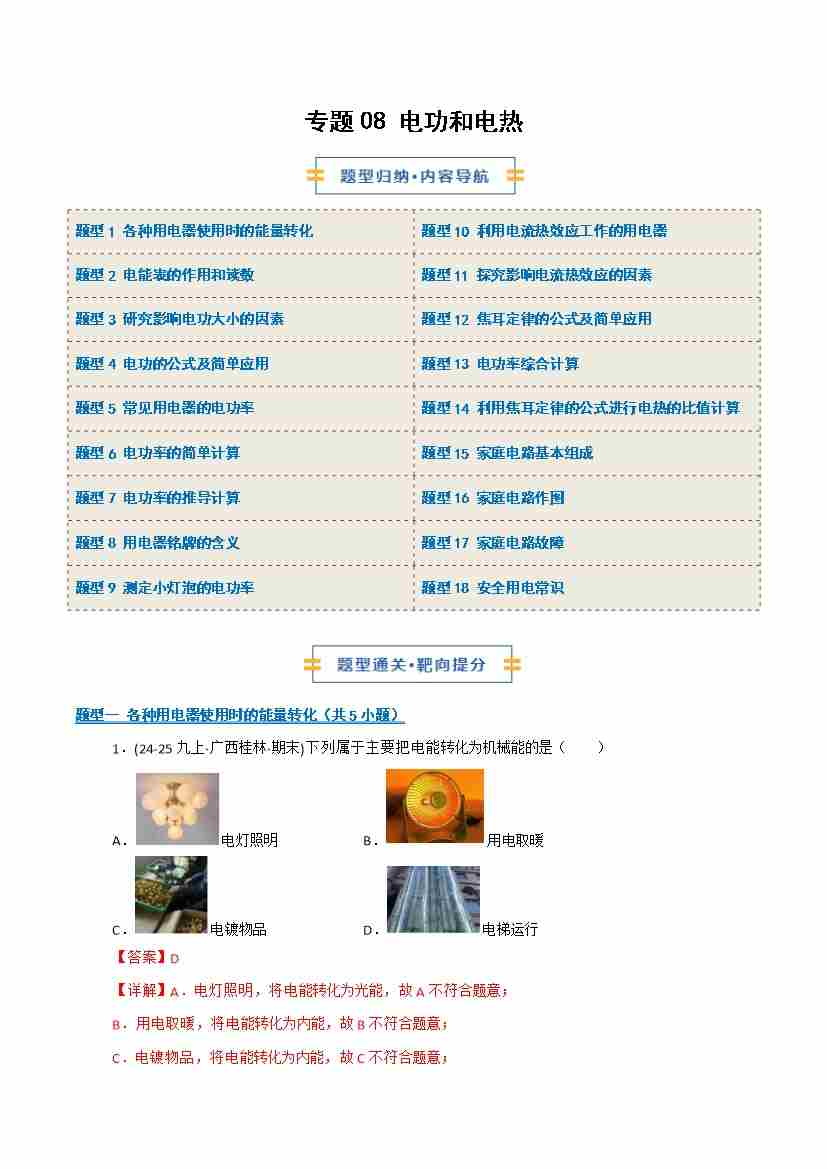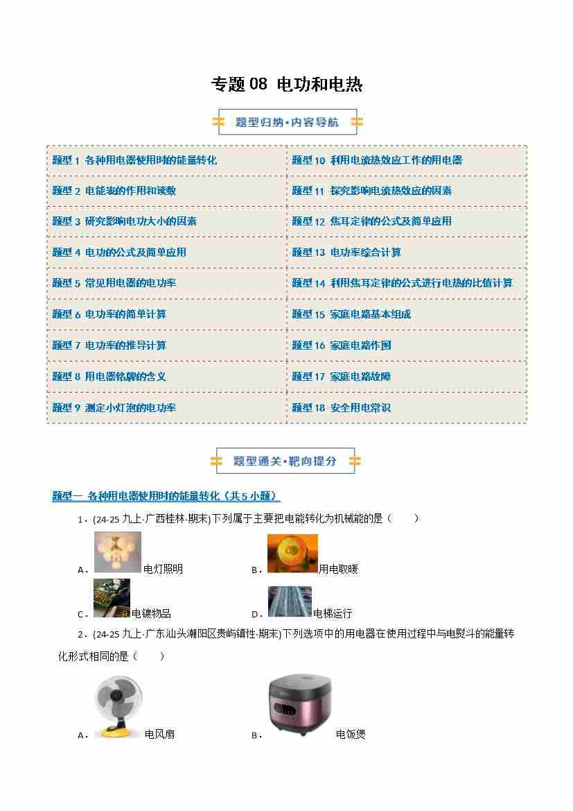 专题08 电功和电热(期末专项训练)(原卷版)