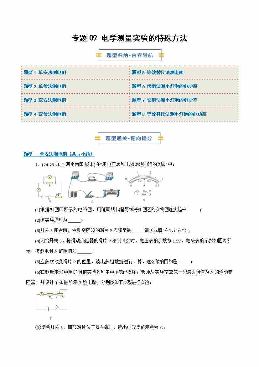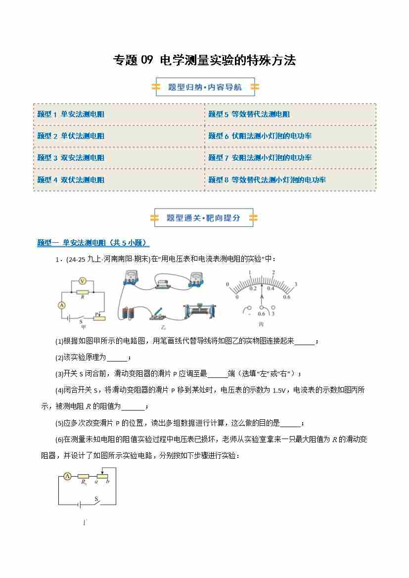 专题09 电学测量实验的特殊方法(期末专项训练)(原卷版)