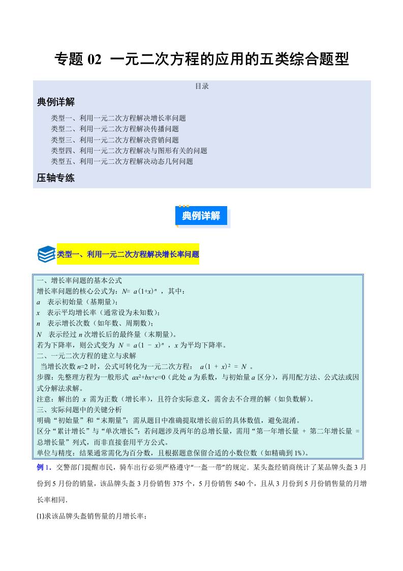 专题02 一元二次方程的应用的五类综合题型(压轴题专项训练)(学生版)