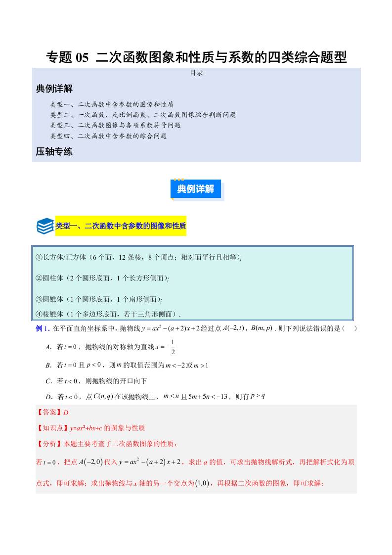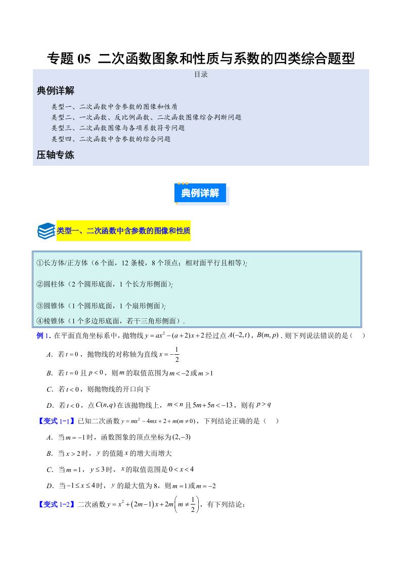 专题05 二次函数图象和性质与系数的四类综合题型(压轴题专项训练)(教师版)