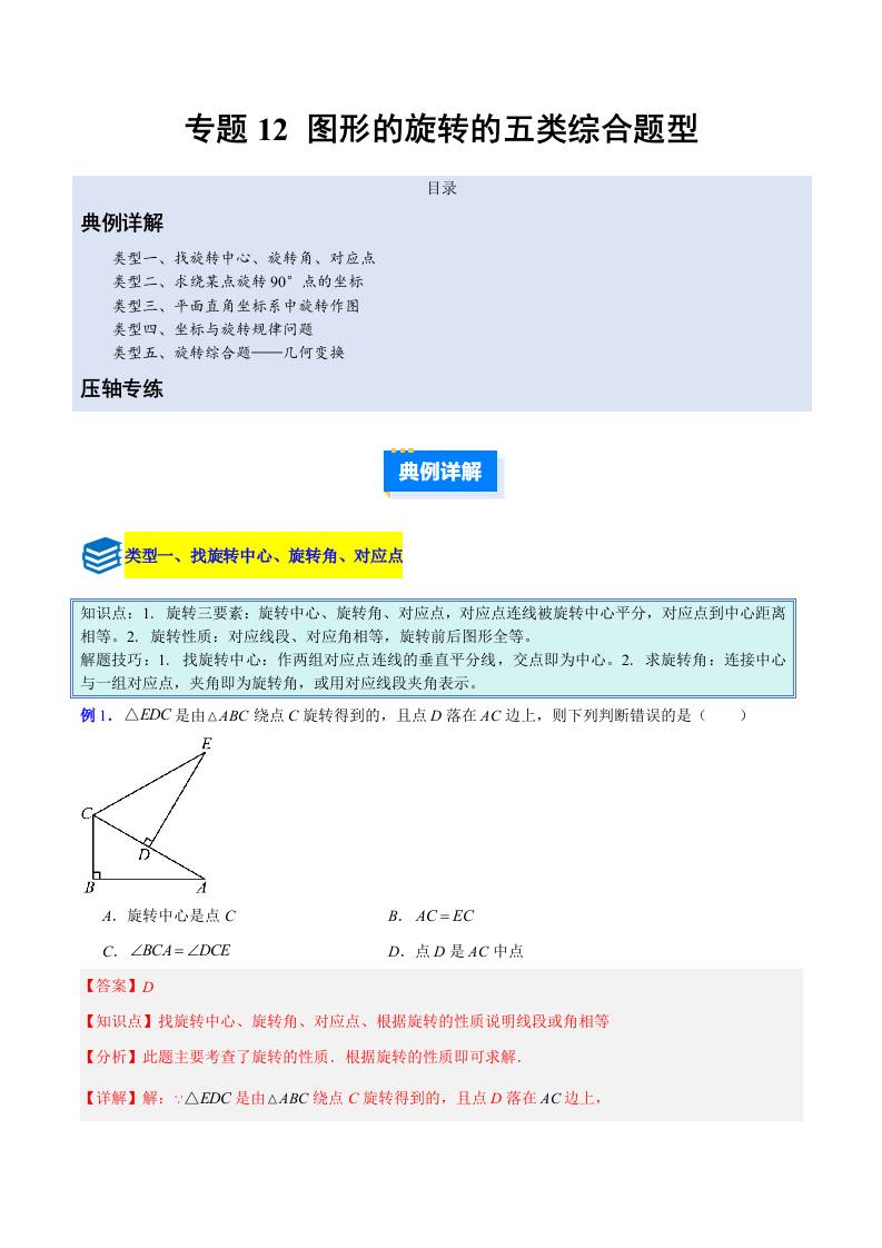 专题12 图形的旋转的五类综合题型(压轴题专项训练) (教师版)