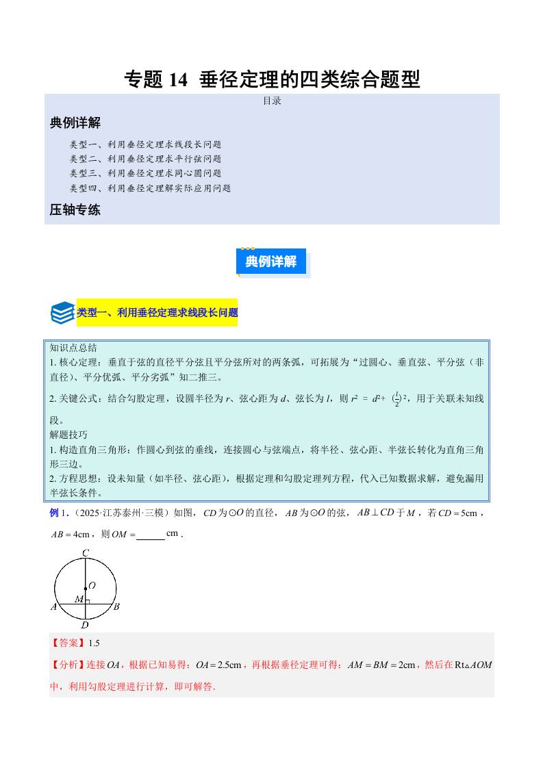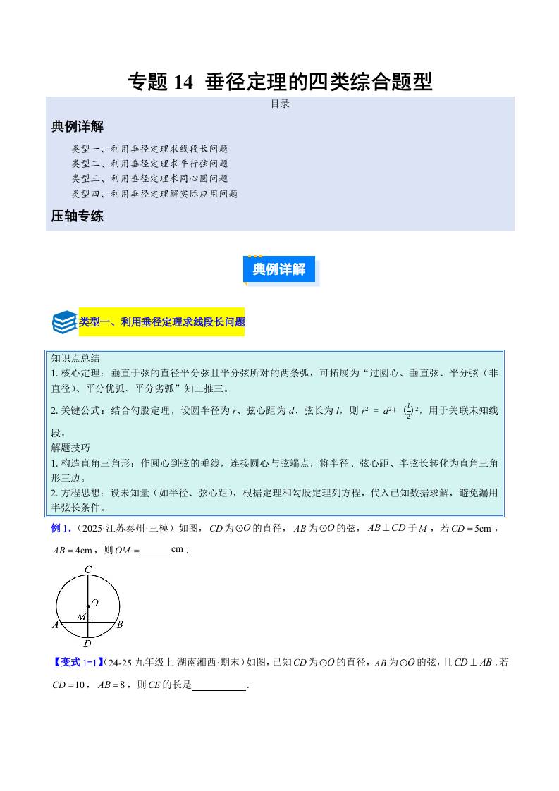 专题14 垂径定理的四类综合题型(压轴题专项训练)(学生版)