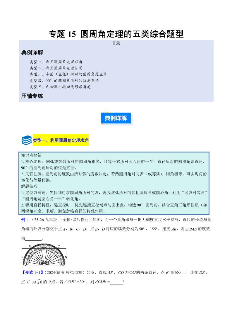专题15 圆周角定理的五类综合题型(压轴题专项训练)(学生版)