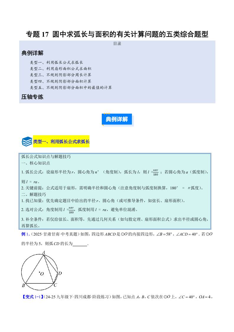 专题17 圆中求弧长与面积的有关计算问题的五类综合题型(压轴题专项训练)(学生版)