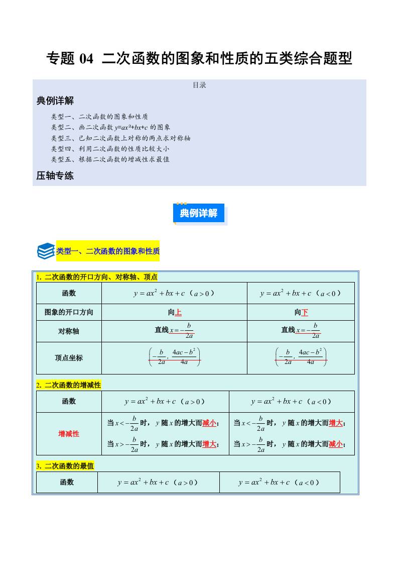 专题04 二次函数的图象和性质的五类综合题型(压轴题专项训练)(学生版)