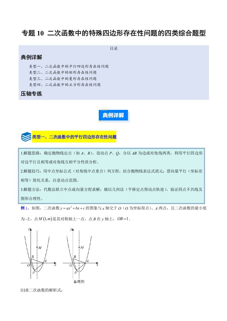 专题10 二次函数中的特殊四边形存在性问题的四类综合题型(压轴题专项训练) (学生版)