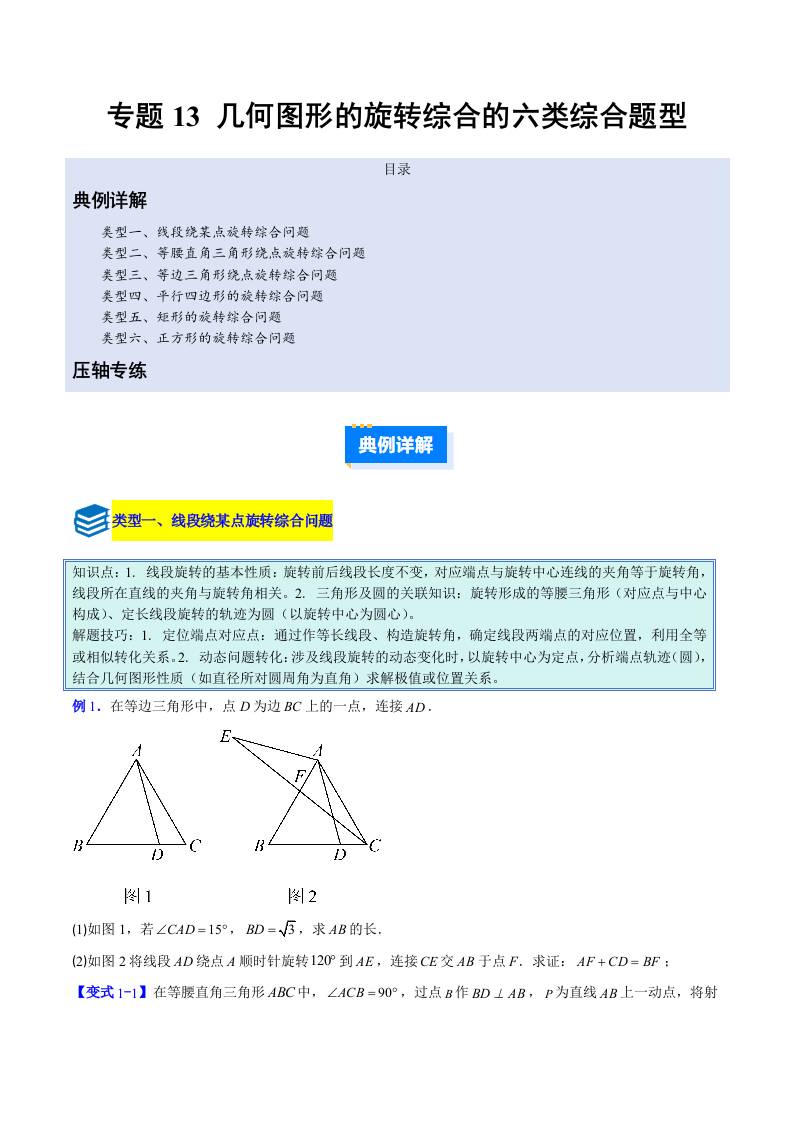 专题13 几何图形的旋转综合的六类综合题型(压轴题专项训练) (学生版)