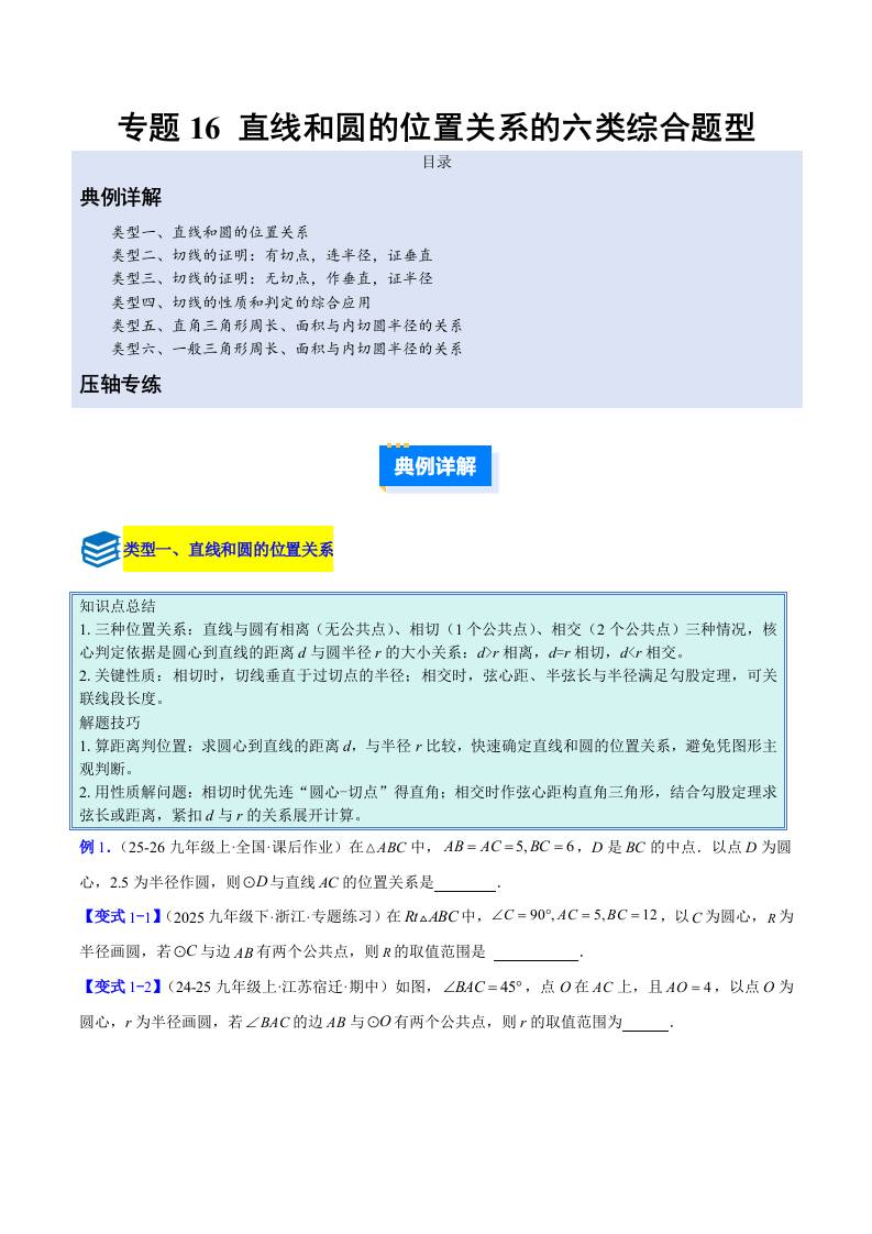 专题16 直线和圆的位置关系的六类综合题型(压轴题专项训练)(学生版)