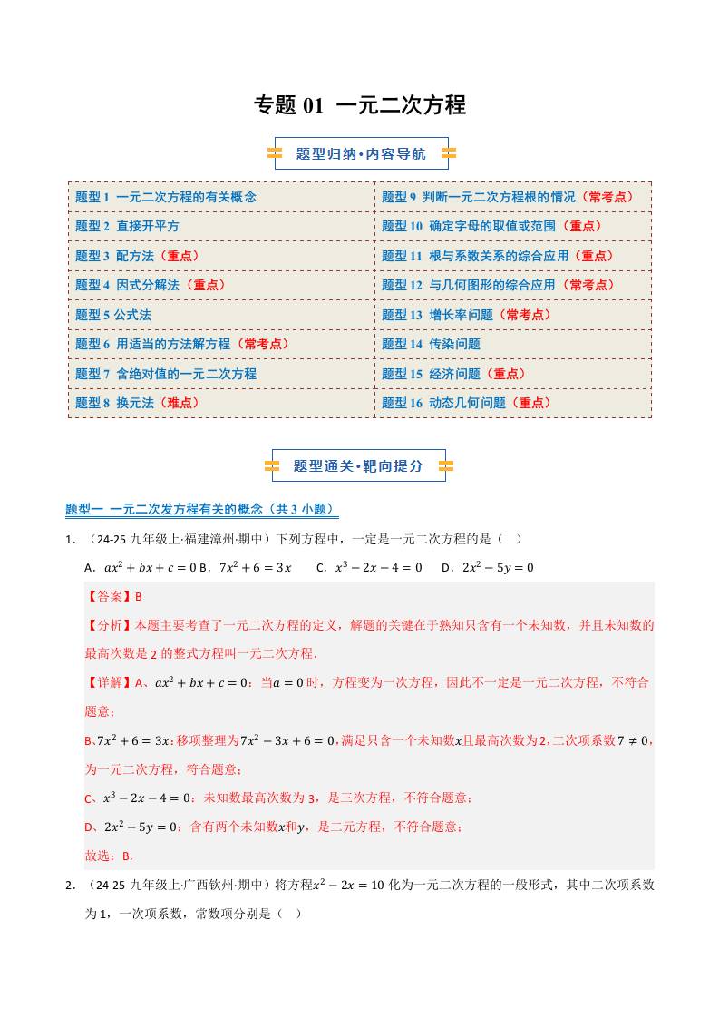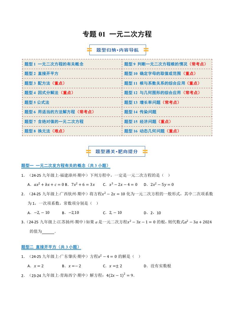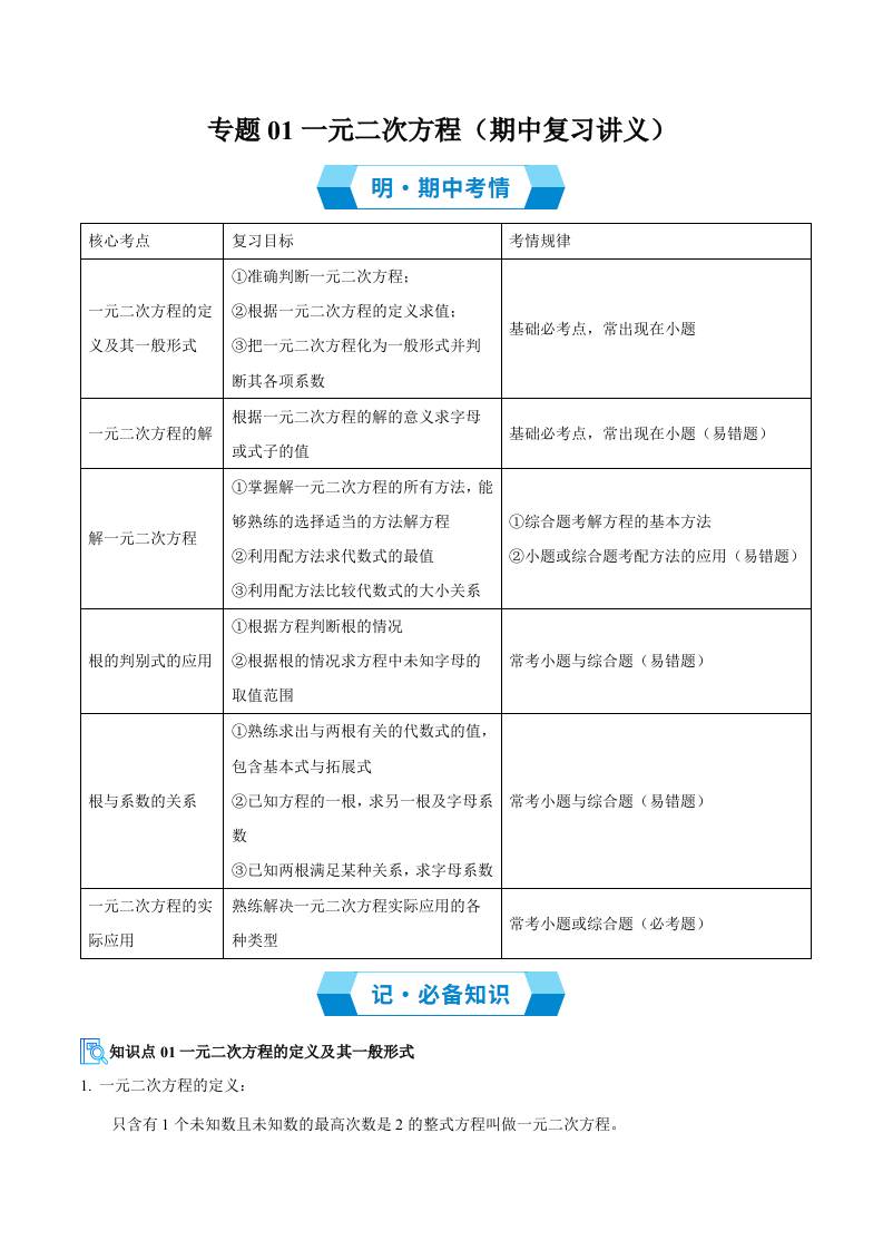 专题01 一元二次方程(期中复习讲义)(学生版)
