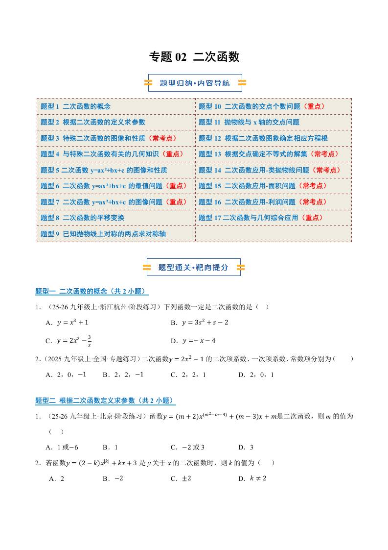 专题02 二次函数(9知识&23题型&6易错&6方法清单)(期中知识清单)(学生版)