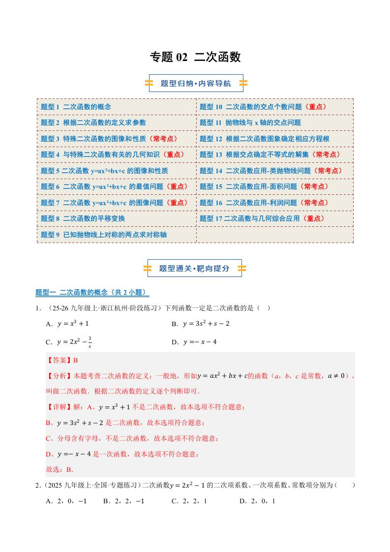 专题02 二次函数(9知识&23题型&6易错&6方法清单)(期中知识清单)(教师版)