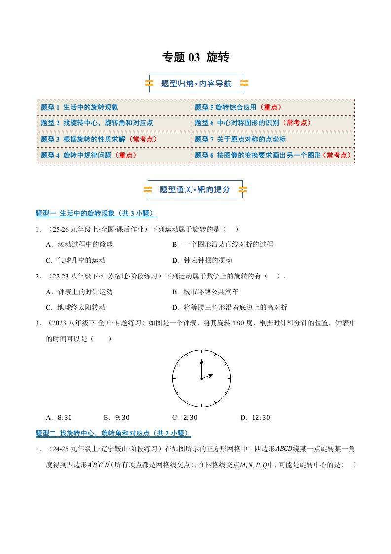 专题03 旋转 8大题型(期中专项训练)(学生版)