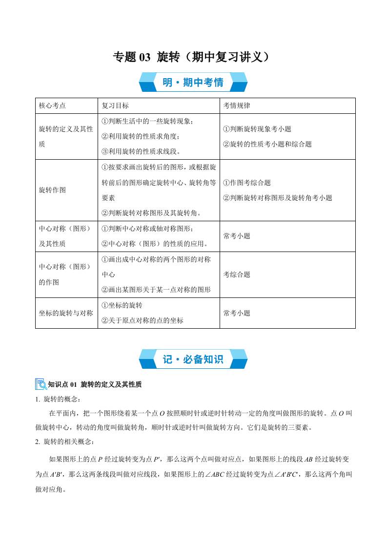 专题03 旋转 3知识&8题型&3易错&3方法清单(期中知识清单)(教师版)