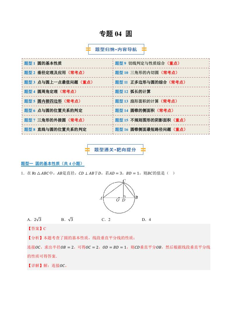 专题04 圆 16大题型(期中专项训练)(教师版)