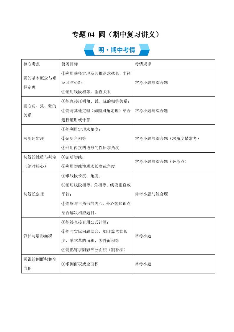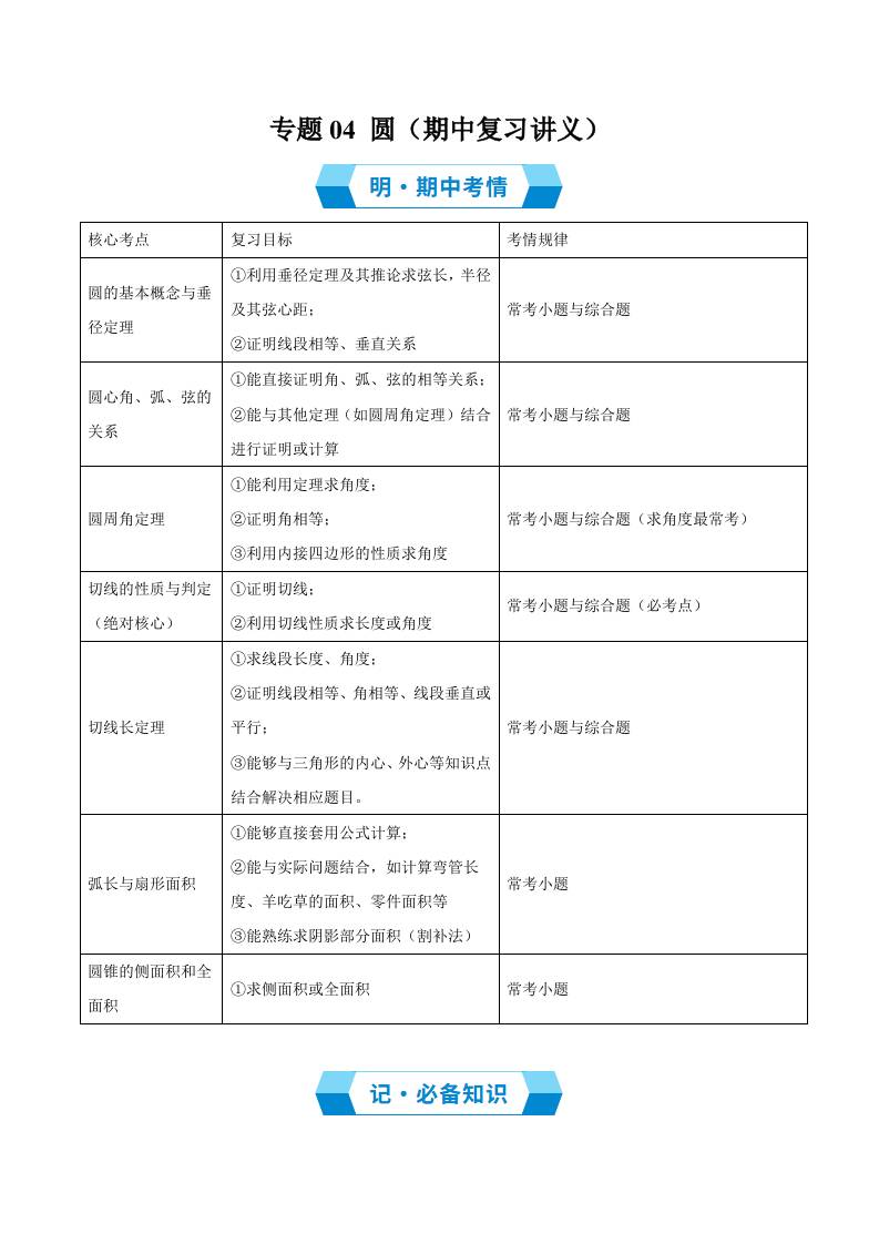 专题04 圆(13知识&17题型&6易错&5方法清单)(期中知识清单)(学生版)