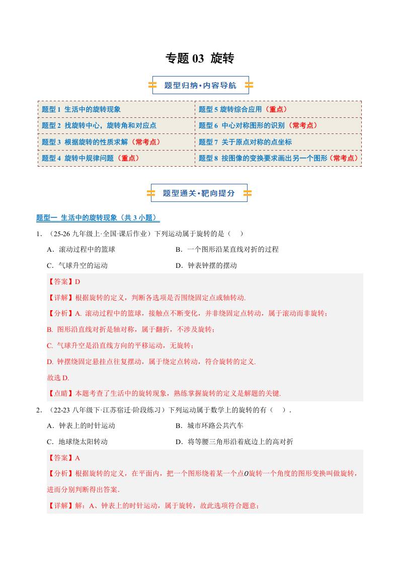 专题03 旋转 8大题型(期中专项训练)(学生版)