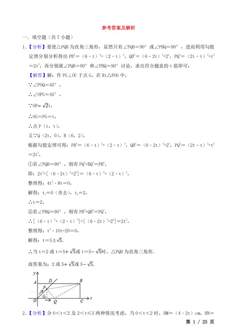 九上数学一元二次方程中的动点问题每日一练【答案】