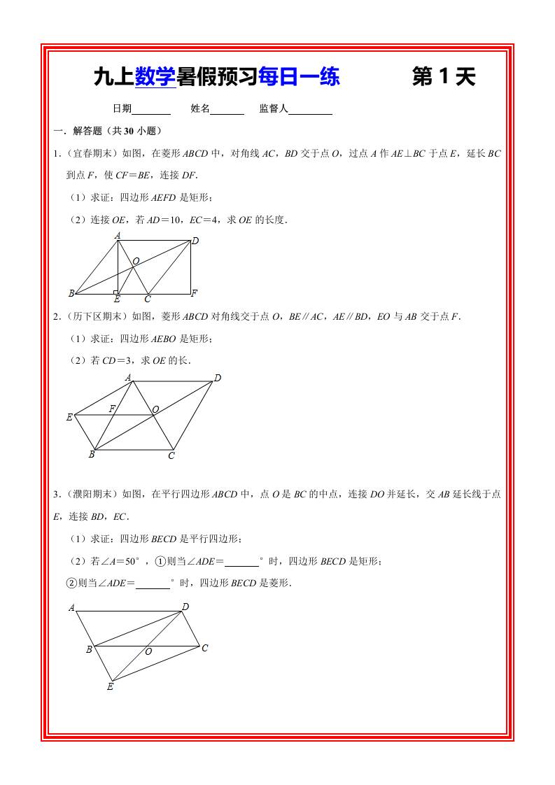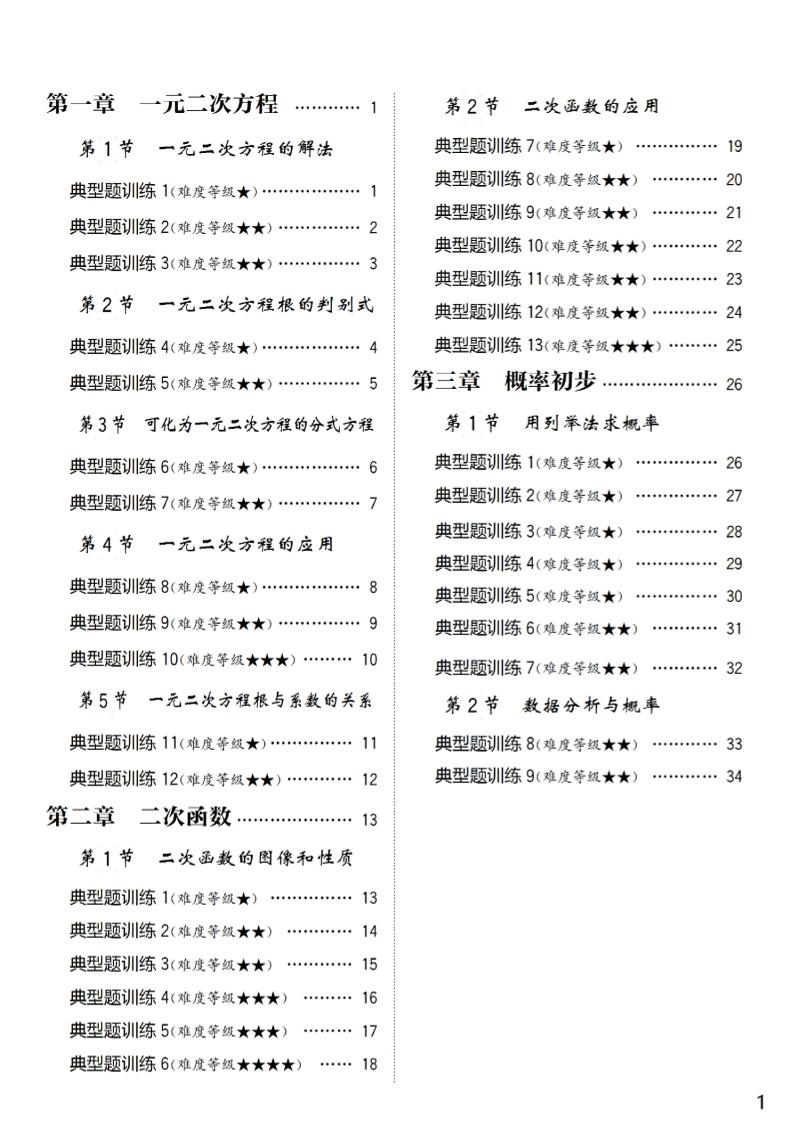 九上数学暑假预习每日一练 20天