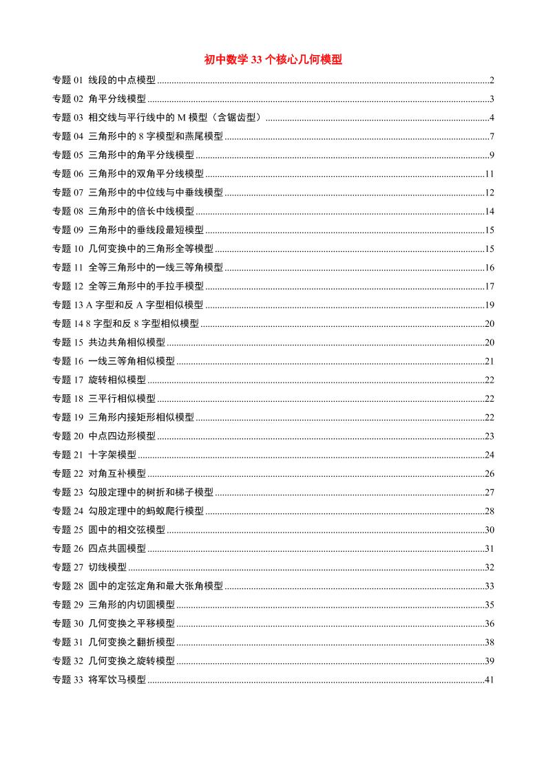 初中数学33个核心几何模型