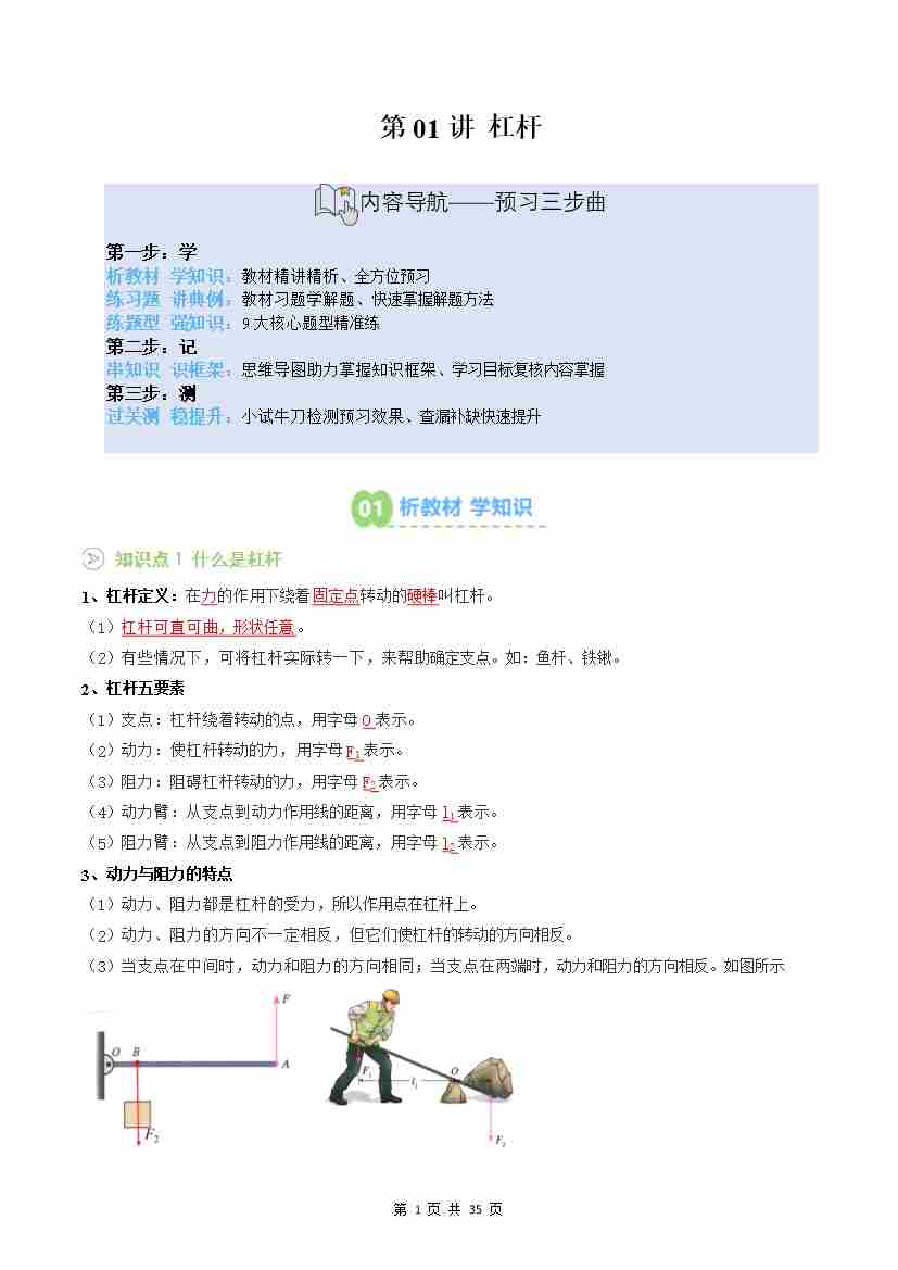 【苏科】第01讲:杠杆(预习)(原卷版)