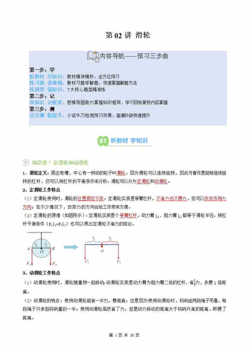 【苏科】第02讲:滑轮(预习)(原卷版)