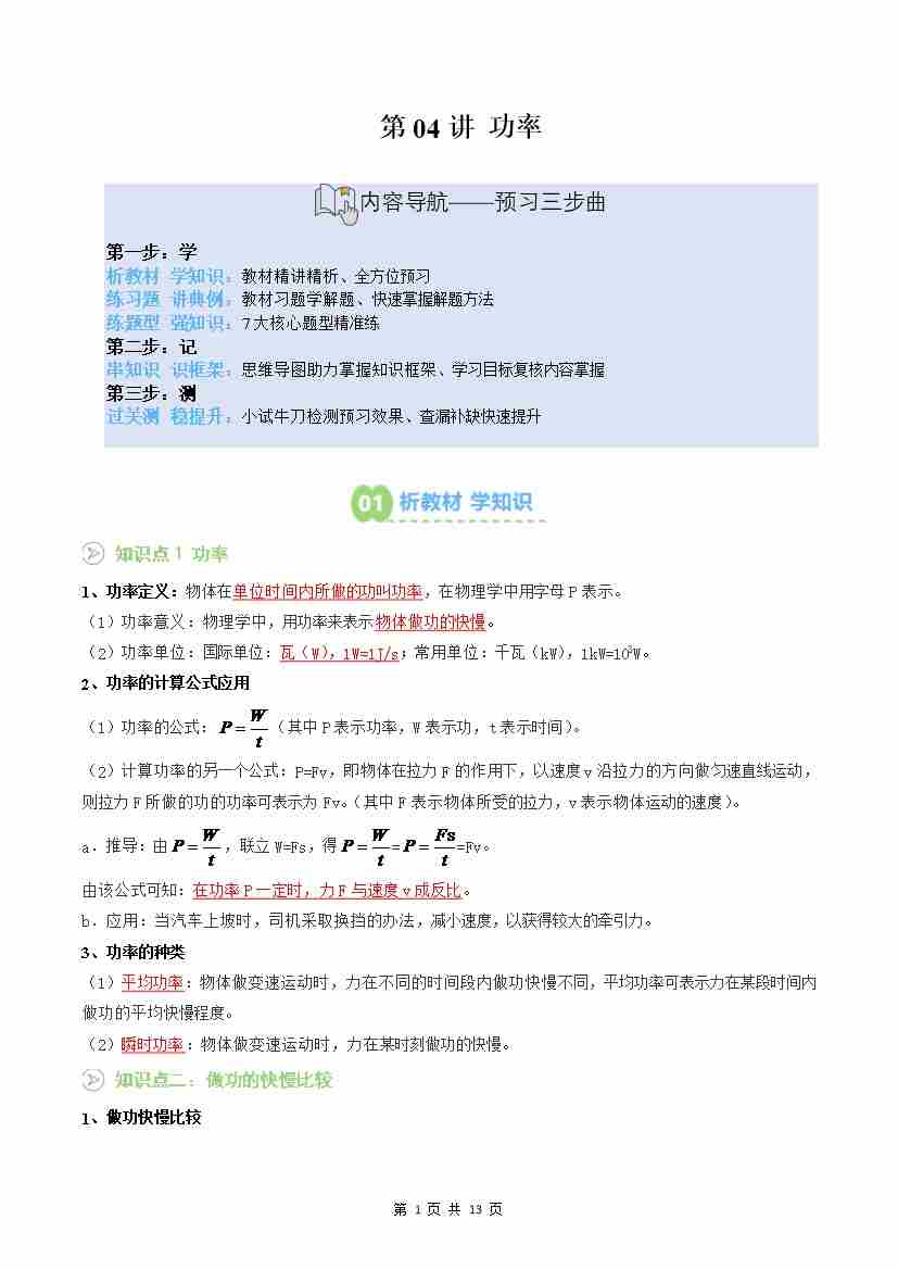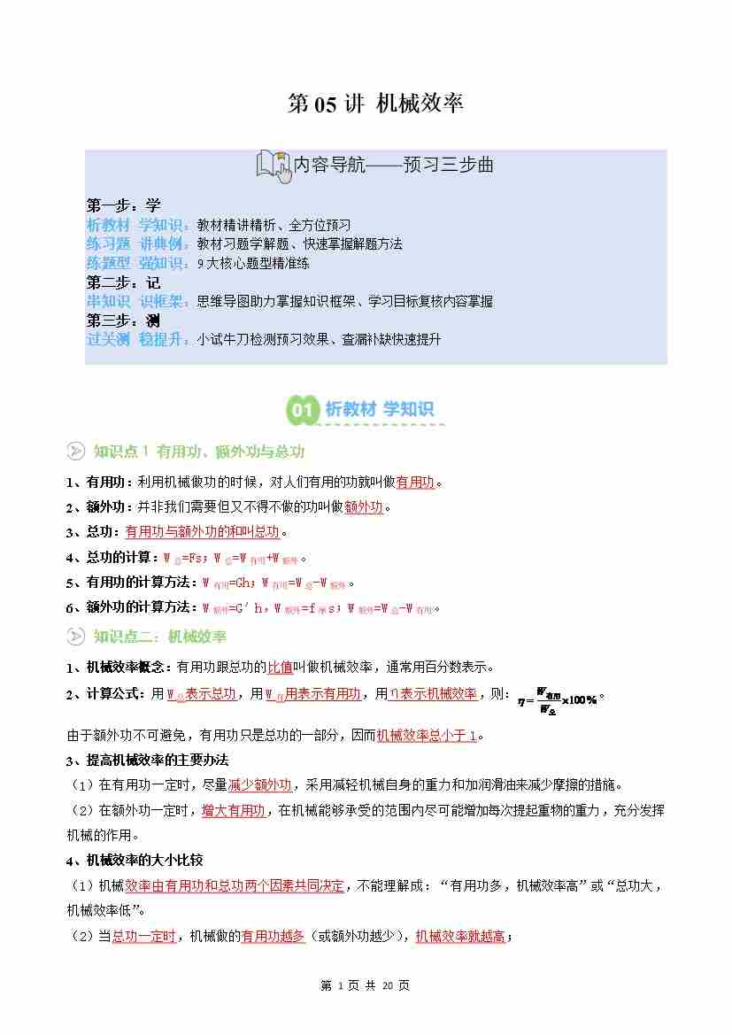 【苏科】第05讲:机械效率(预习)(原卷版)