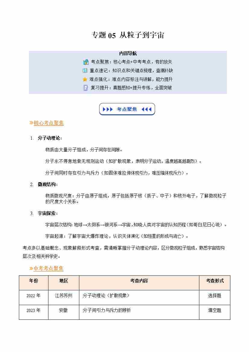 专题05 从粒子到宇宙(复习)(原卷版)