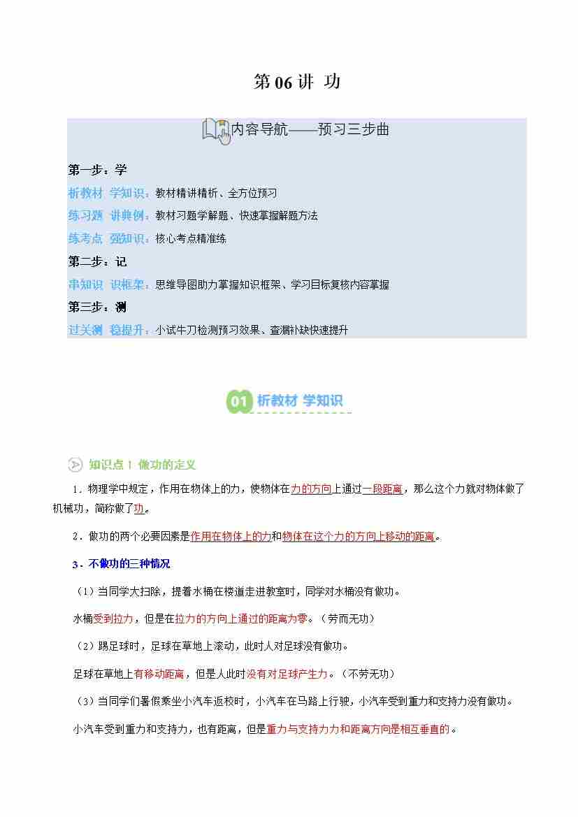 专题06 功(预习)(原卷版)
