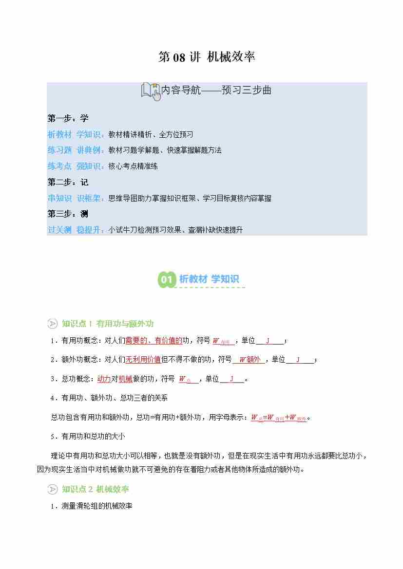 专题08 机械效率(预习)(解析版)