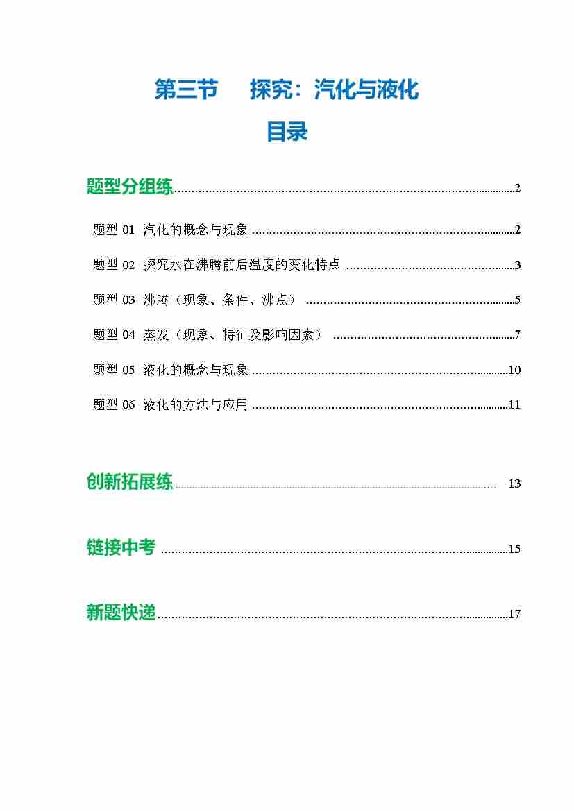 第三节 探究:汽化与液化 (培优考点练)(解析版)