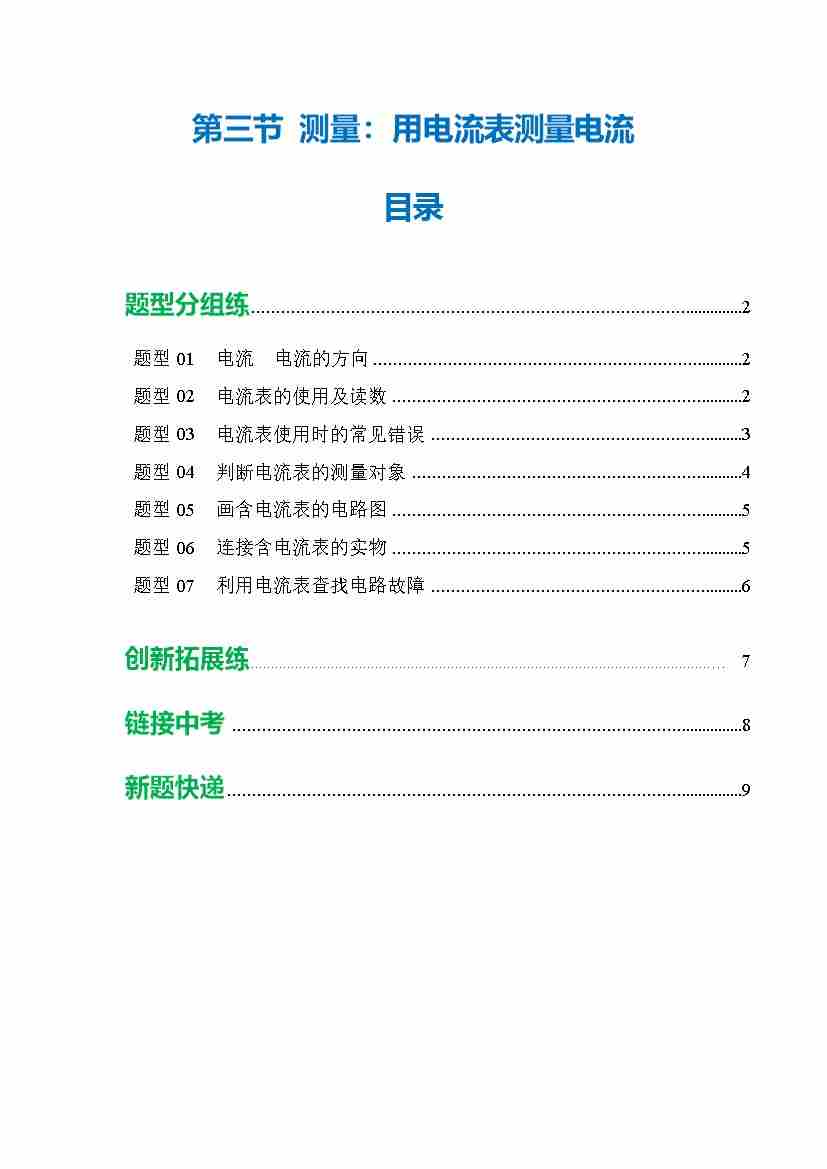 第三节 测量:用电流表测量电流 (培优考点练)(原卷版)