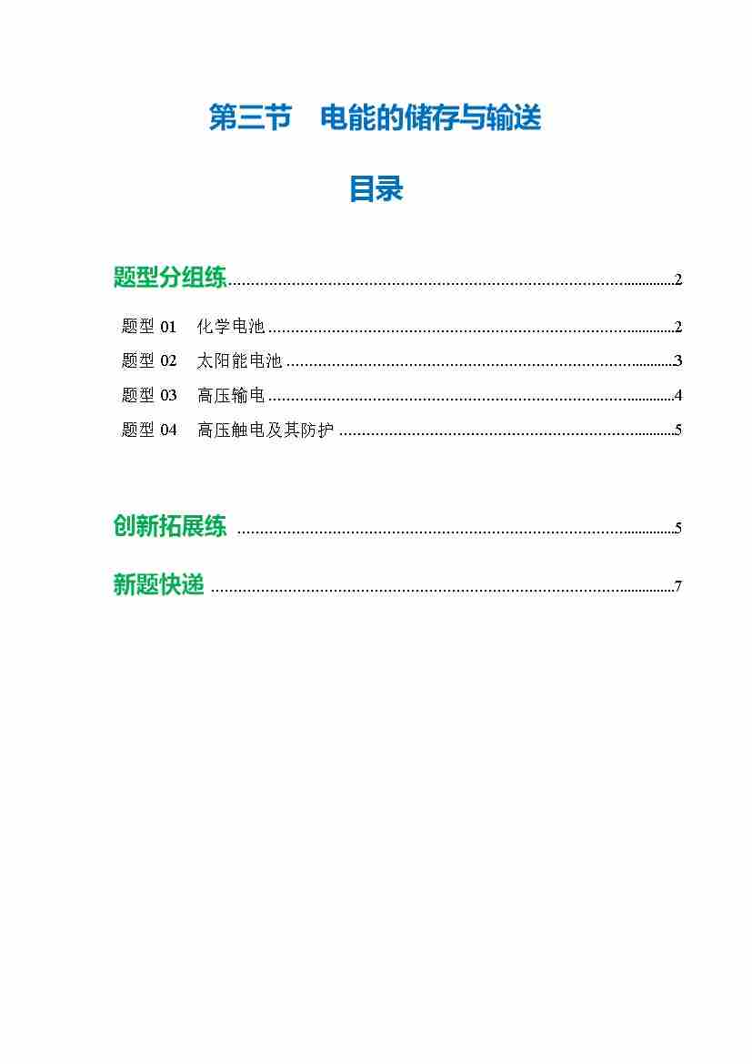 第三节 电能的储存与输送 (培优考点练)(原卷版)